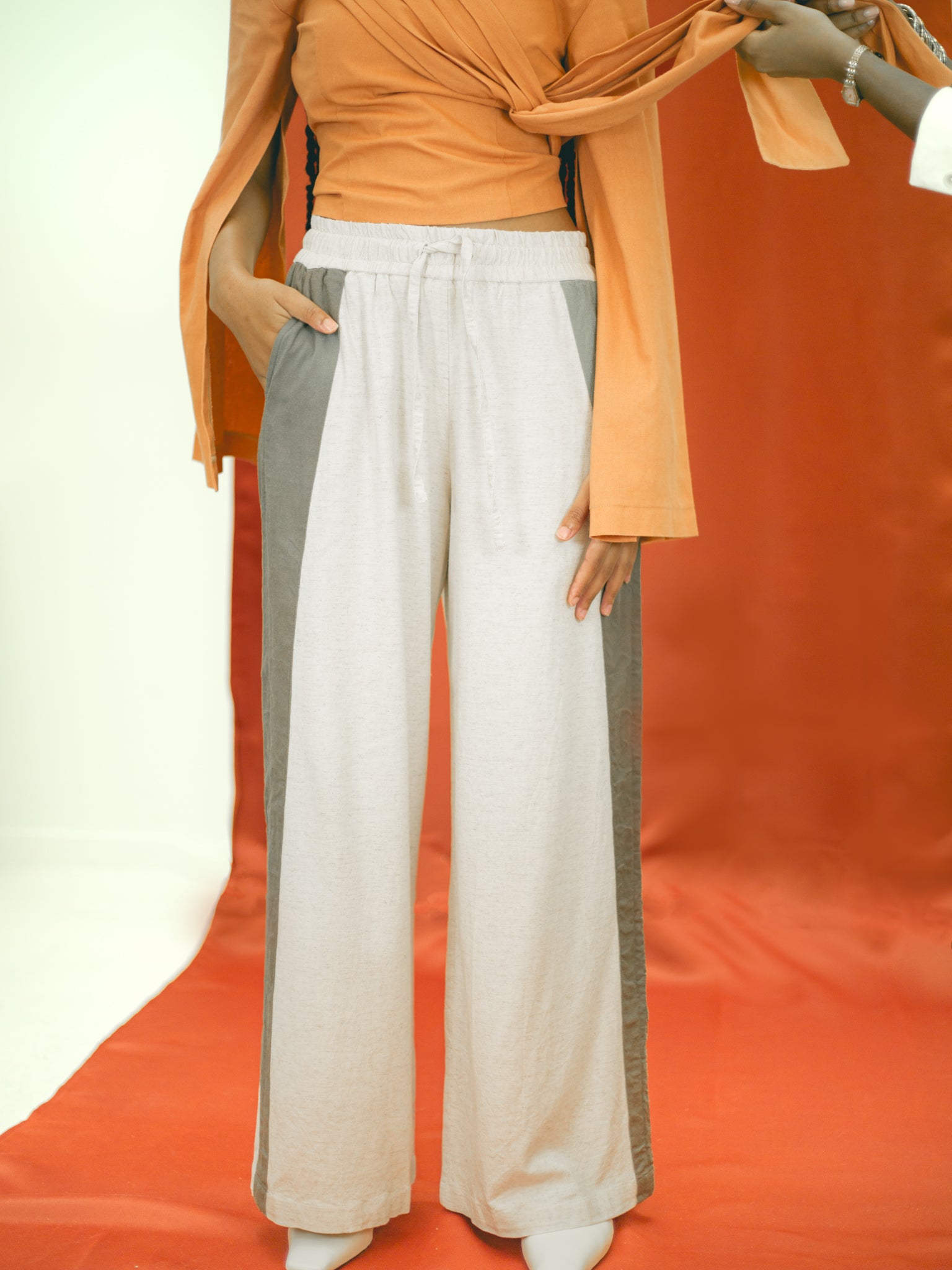 Ease meets intention in the UHAÏ pants — designed for movement, tailored for presence. Cut from a lightweight linen blend, these trousers offer a fluid silhouette with a flexible elastic waistband and hidden cords for a personalized fit. A contrasting side panel adds quiet edge, creating a refined balance of utility and understated elegance. Whether you're navigating the city or slipping into slow moments, UHAÏ moves with you.